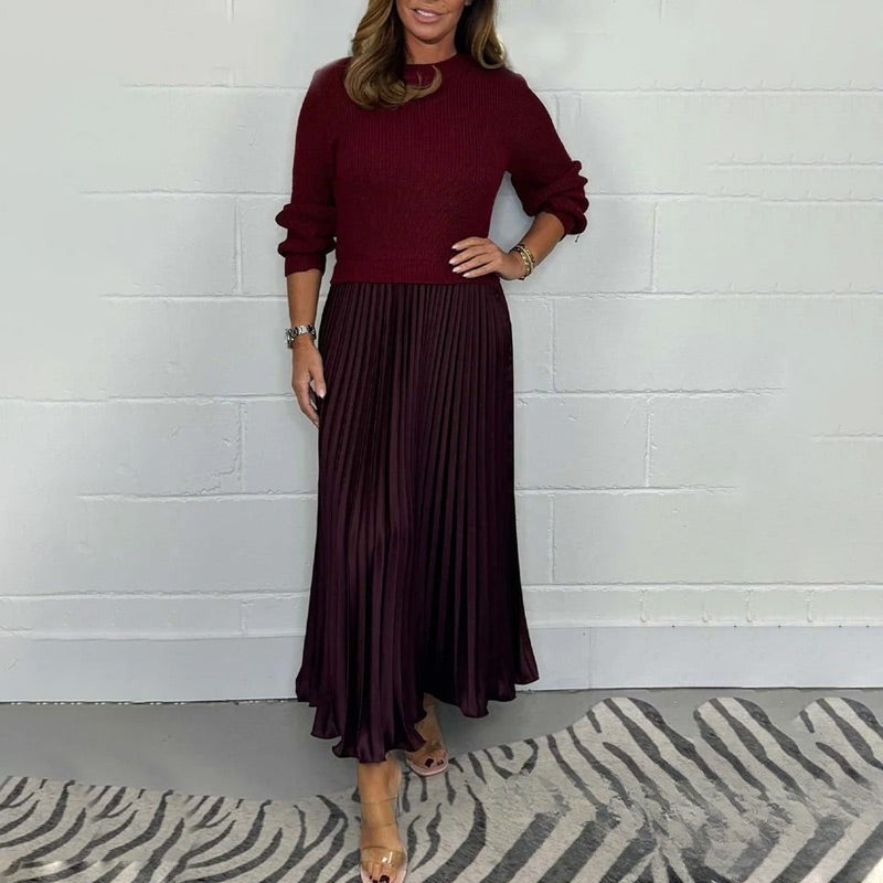 - Detaljer: Tvådelat set, långärmad topp, plisserad midikjol, elegant passform